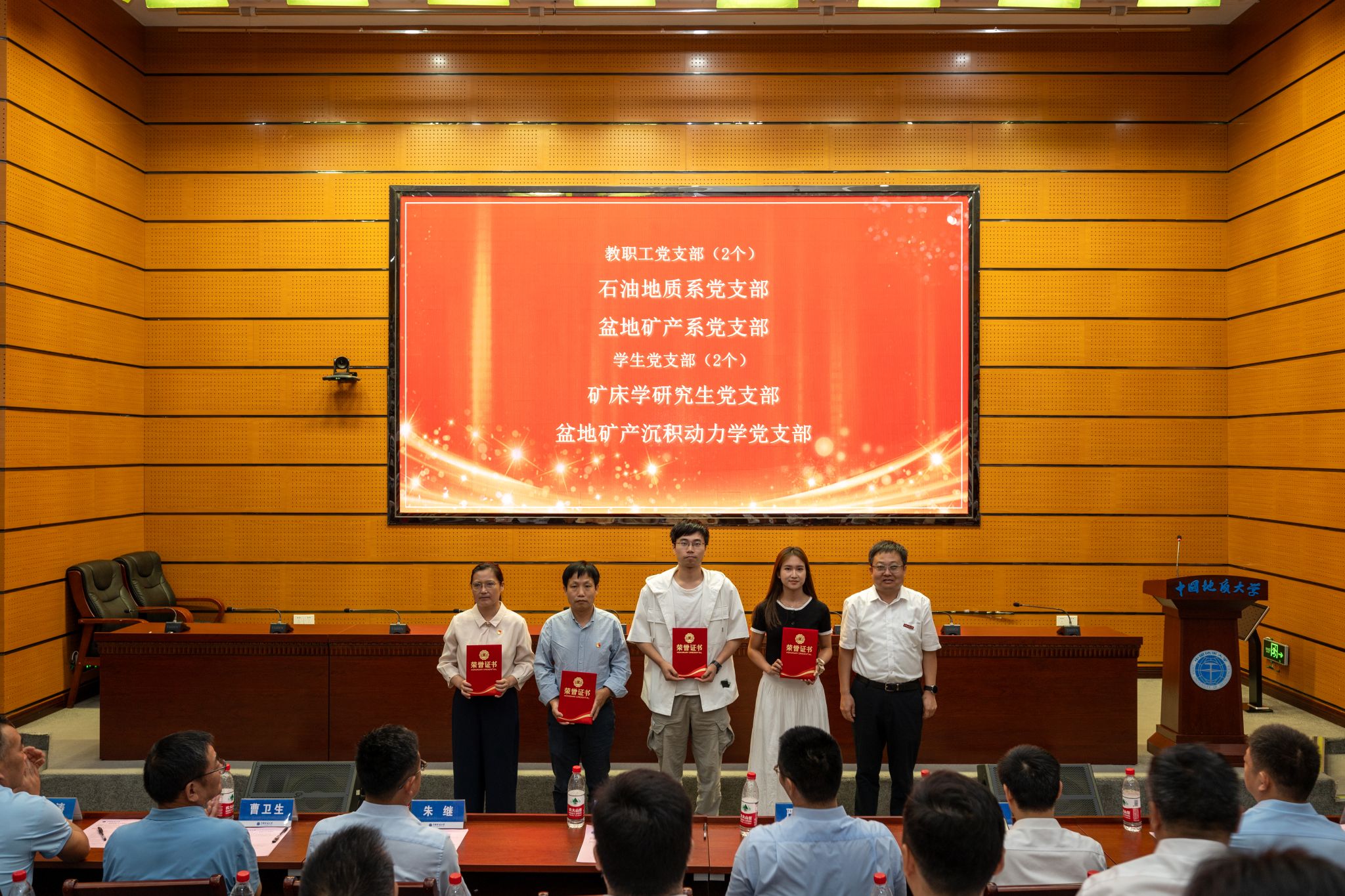 党委书记高复阳为受表彰2022-2024年度院级先进基层党组织颁发证书。