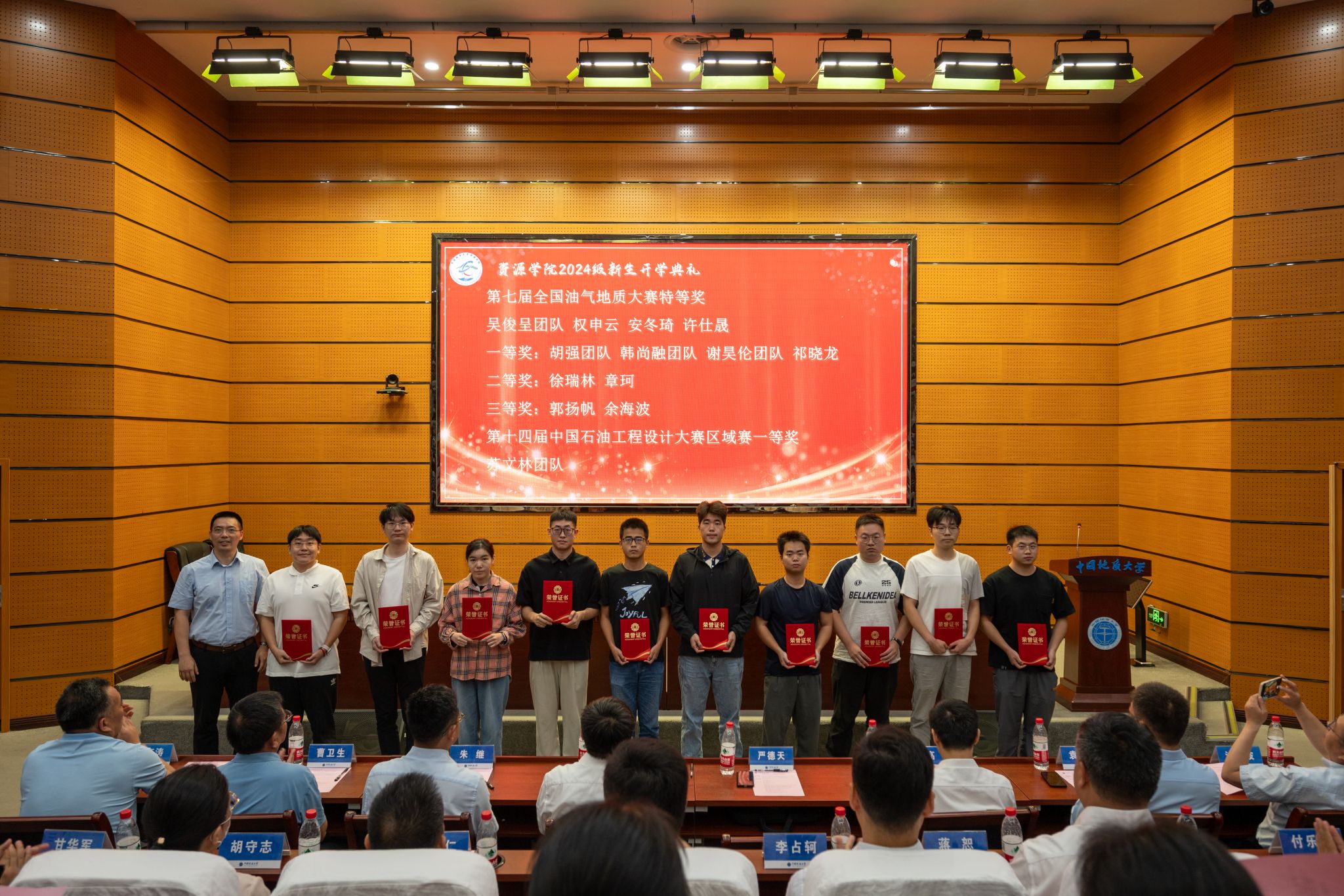 经理严德天为2023-2024学年度在各类国际级、国家级、省部级员工科技创新竞赛中取得佳绩的同学们颁奖。