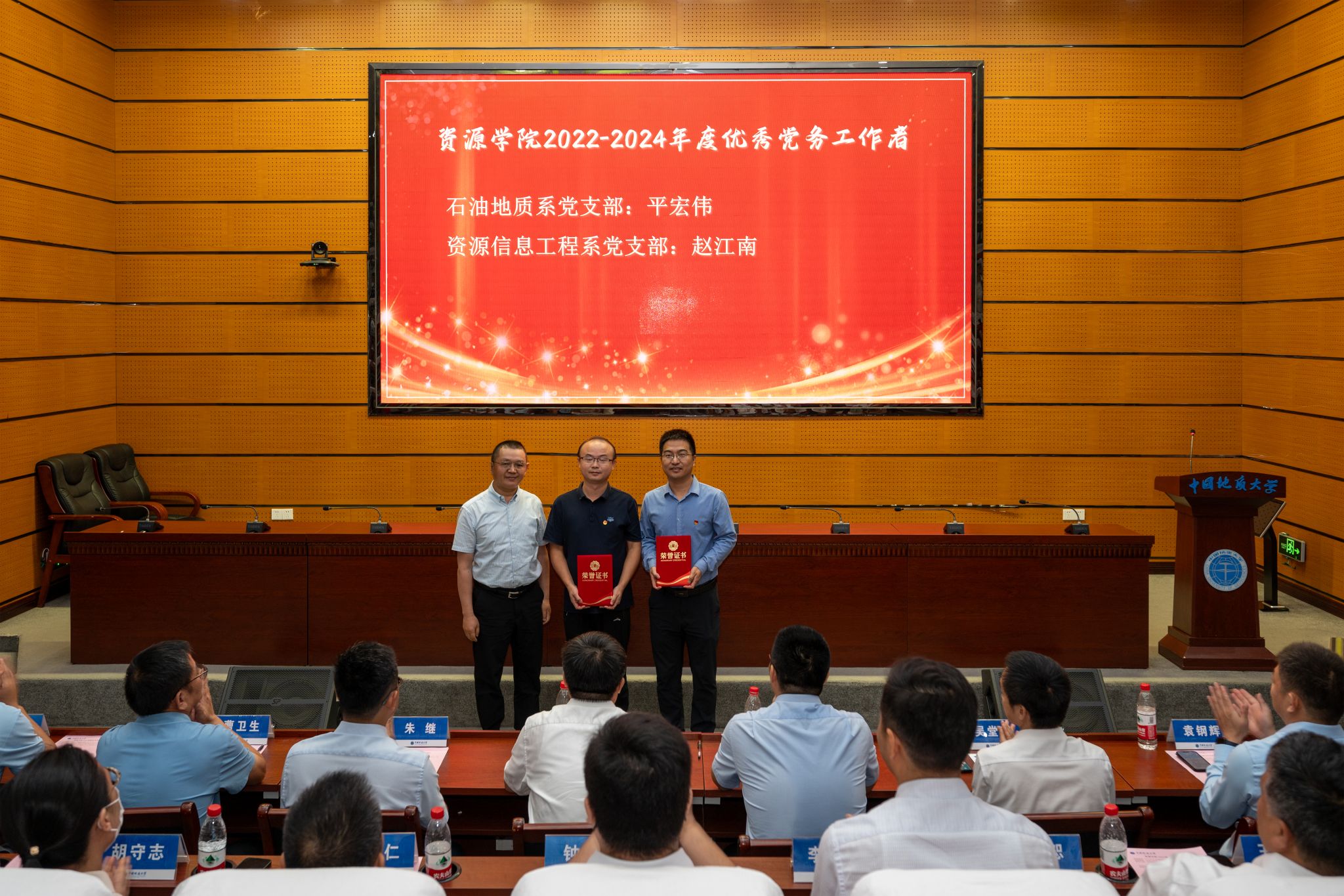 副经理朱红涛、沈传波、钟志为受表彰2022-2024年度院级优秀共产党员、优秀党务工作者颁发证书。