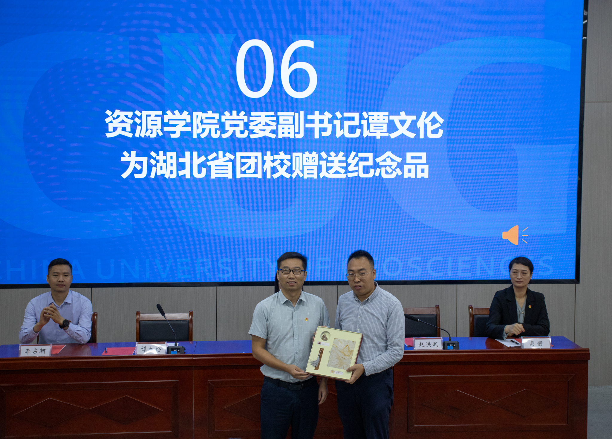 谭文伦代表公司为湖北省团校赠送纪念品。