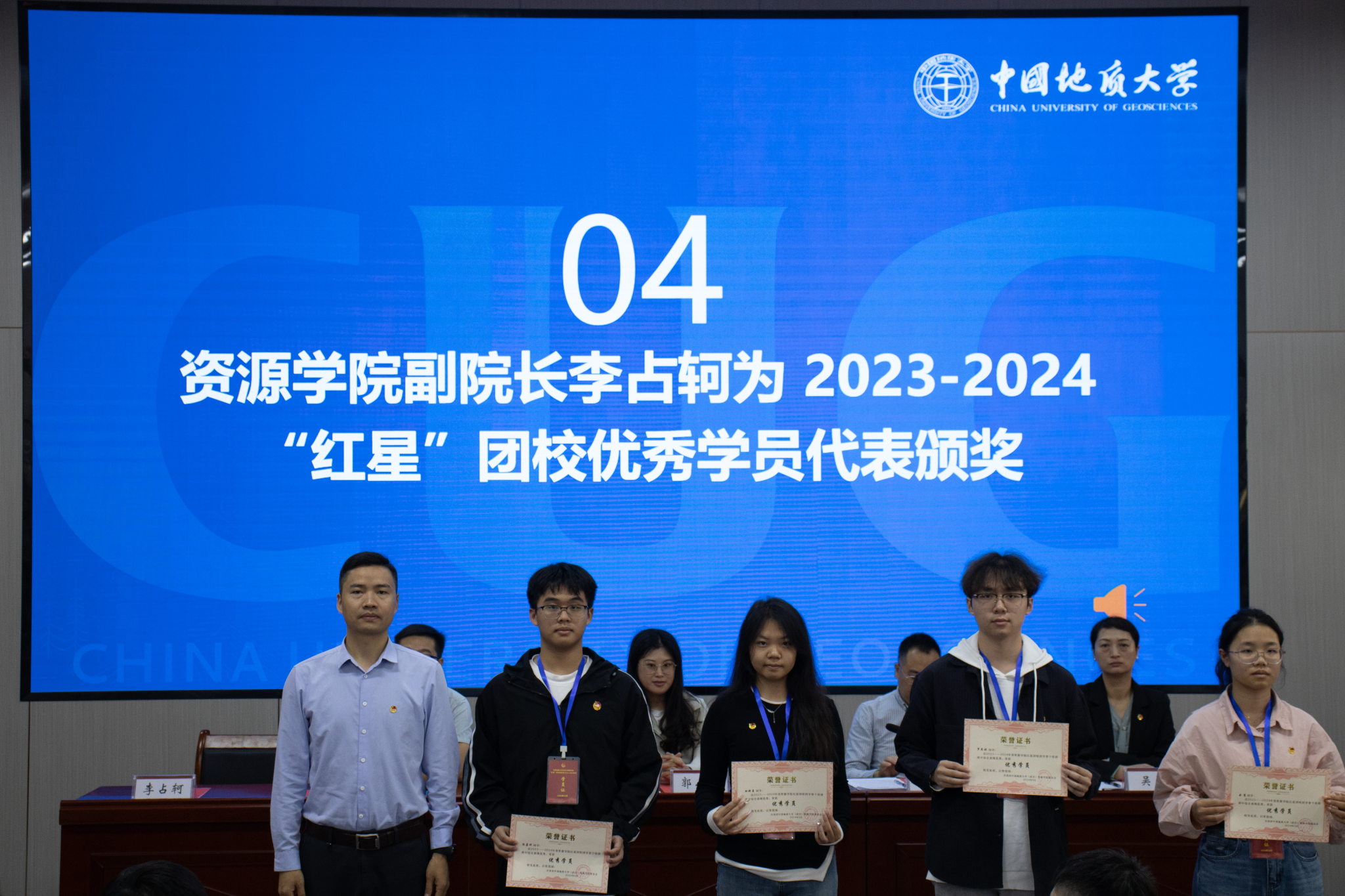李占轲为2023-2024“红星”团校优秀学员代表颁奖。