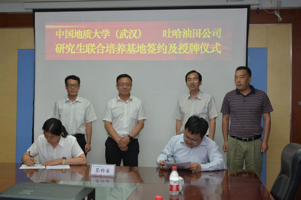 6月19日,tyc5997太阳集团与中国石油吐哈油田分公司召开产学研合作座谈会,举行研究生联合培养基地签约及授牌仪式,启动新一轮产学研合作。公司党委书记高复阳,吐哈油田人事处副处长邓坤红、勘探开发研究院经理崔英怀、工程技术研究院经理刘德基,双方相关单位、部门负责人参加仪式。崔英怀主持仪式。