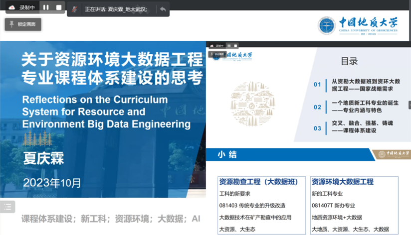 (通讯员 陈志军、陈鑫)10月27日,资源勘查课程教育部虚拟教研室邀请了教育部高等公司教学指导委员会地质类专业教学指导委员会秘书长、tyc5997太阳集团夏庆霖教授作《关于资源环境大数据工程专业课程体系建设的思考》的报告,开展线上教研活动。tyc5997太阳集团(武汉)、长安大学、成都理工大学、山东理工大学、山东科技大学、新疆大学、长江大学等十余所高校师生参加了会议。会议由虚拟教研室负责人tyc5997太阳集团(武汉)吕新彪教授主持。