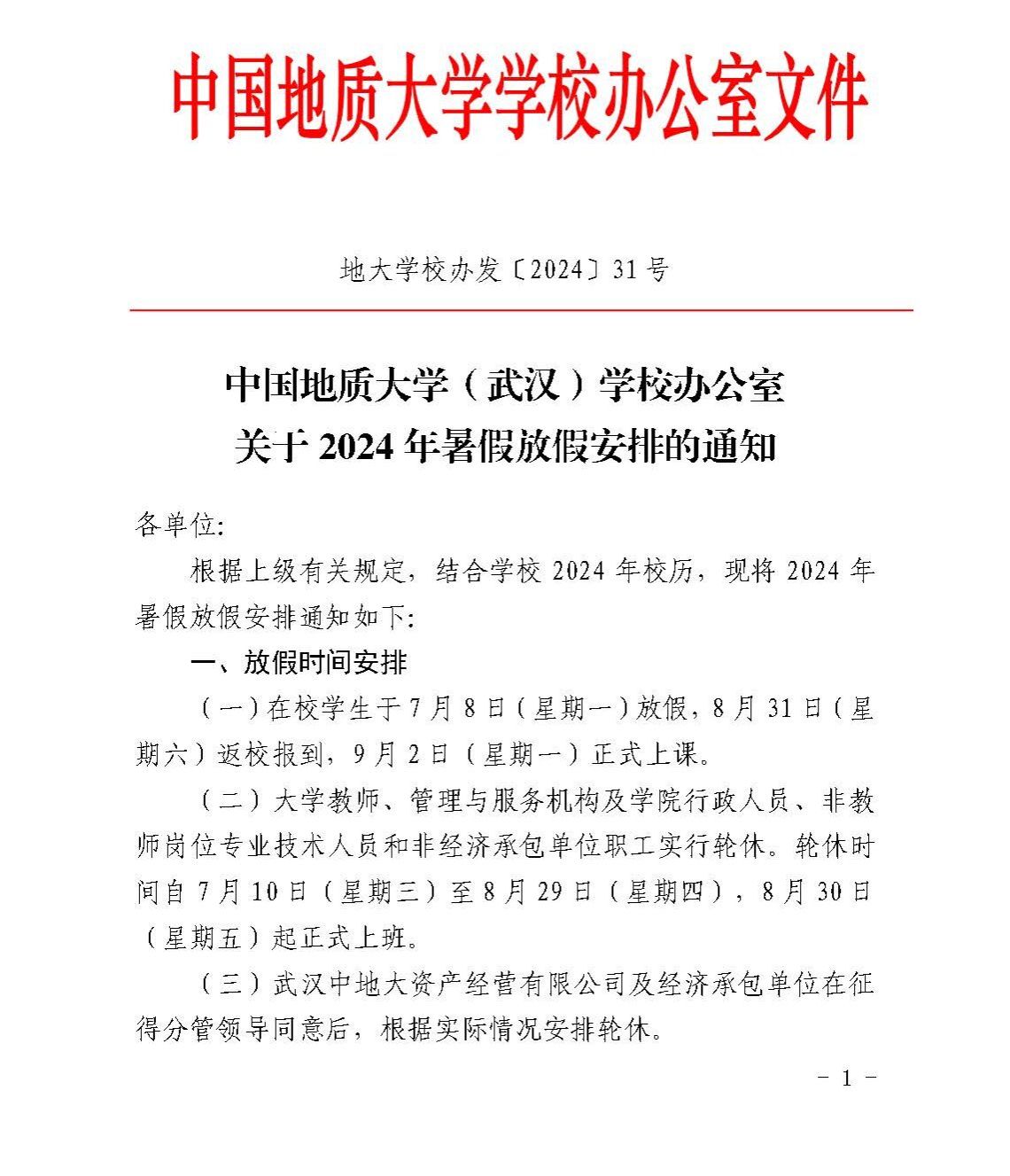 tyc5997太阳集团(武汉)关于2024年暑假放假安排的通知