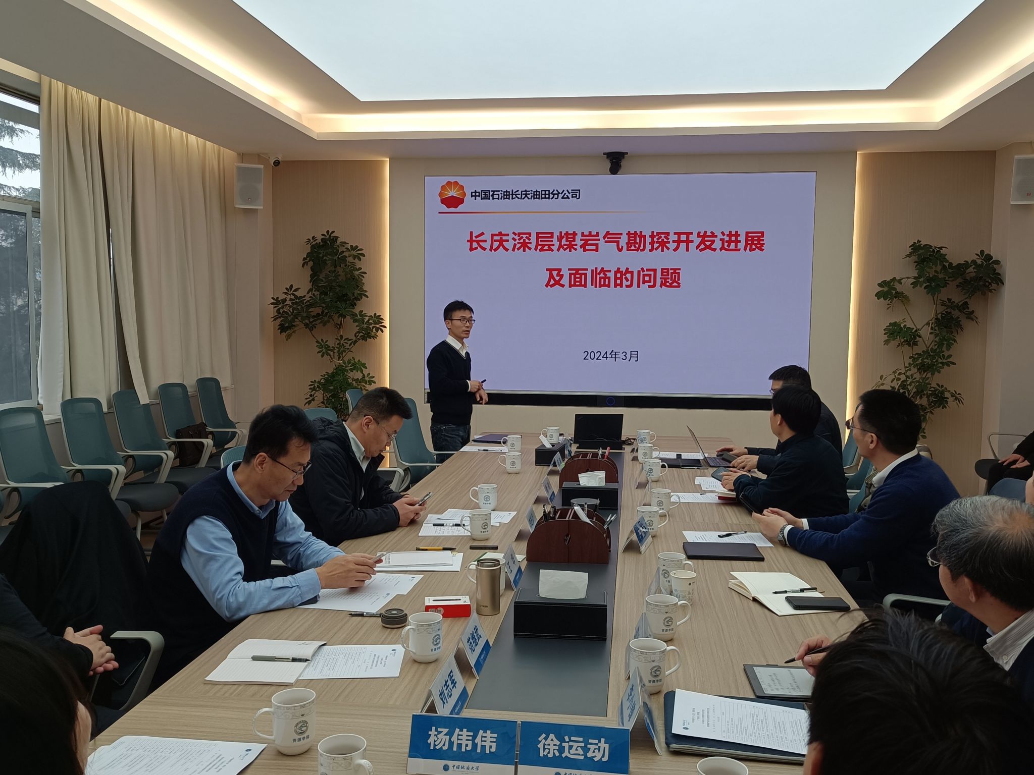 tyc5997太阳集团王小明、田继军、李国庆、吕帅锋、孟庆帮、张琪、杨峰、王磊、周三栋分别对煤层气和页岩气勘探开发相关技术进行汇报交流,为长庆油田深部煤岩气的勘探开发提供思路与建议。
