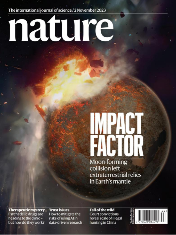近日,2016届员工袁迁以第一作者在《Nature》发表封面论文。该研究由加州理工大学、亚利桑那州立大学和中科院上海天文等机构的学者组成的跨学科国际研究团队合作,研究指出地幔深部巨大的异常体可能是45亿年月球形成大碰撞的遗迹。此项研究为理解地球内部结构、长期演化、地球甚至内太阳系的形成过程提供了重要的新思想。相关研究结果以“Moon-forming impactor as a source of Earth’s basal mantle anomalies”为题于2023年11月2日发表在国际学术期刊《自然》(Nature)上。